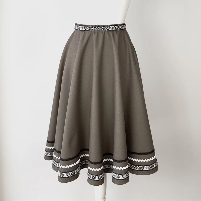 Dieser handgefertigte Trachtenrock überzeugt durch seine zeitlose A-Linie und liebevolle Details. Der hochwertige Stoff fällt schön und sorgt für eine elegante, zugleich alltagstaugliche Silhouette. Am Saum ist der Rock mit mehreren aufgenähten Zierbändern veredelt, die ihm einen klassischen Trachtencharakter mit modernem Touch verleihen.