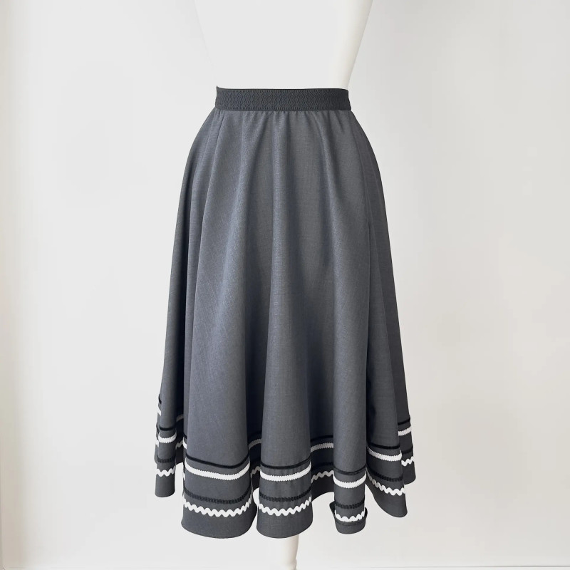 Dieser handgefertigte Trachtenrock überzeugt durch seine zeitlose A-Linie und liebevolle Details. Der hochwertige Stoff fällt schön und sorgt für eine elegante, zugleich alltagstaugliche Silhouette. Am Saum ist der Rock mit mehreren aufgenähten Zierbändern veredelt, die ihm einen klassischen Trachtencharakter mit modernem Touch verleihen.